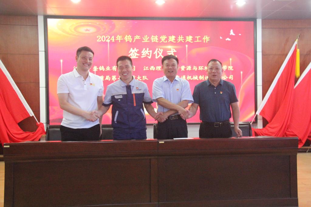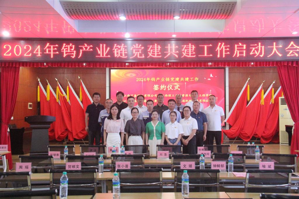 本网讯 9月27日,资源与环境工程学院党委携手江西下垄钨业有限公司党委、江西省地质局第七地质大队党委及江西鑫通机械制造有限公司党支部,在江西下垄钨业有限公司办公楼5楼会议室共同举行2024年钨产业链党建共建启动会。江西下垄钨业有限公司党委书记、董事、总经理段志文,资源与环境工程学院党委副书记张春雷、江西省地质局第七大队党委书记黄明光、江西鑫通机械制造有限公司党支部书记黄良以及下垄钨业有限公司中层以上干部及职工代表、各单位代表参加了启动会。会议由下垄钨业党委委员、副总经理殷建忠主持。