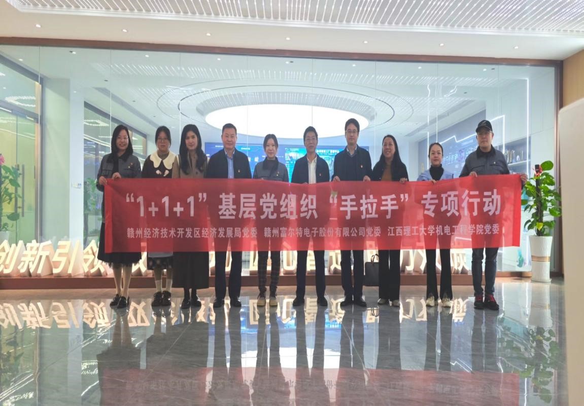 机电工程学院机械设计党支部与赣州经济技术开发区经济发展局党支部、赣州富尔特电子股份有限公司党支部共同签订《“1+1+1”基层党支部共建协议》,并联合开展主题党日活动。
