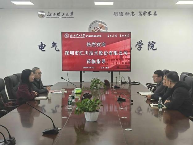 与深圳市汇川技术股份有限公司在三江校区召开座谈交流会。校党委常委、副校长龚姚腾,汇川技术股份有限公司校企合作部总经理茹春艳,数字化事业部总监陈潇男出席会议,百家乐