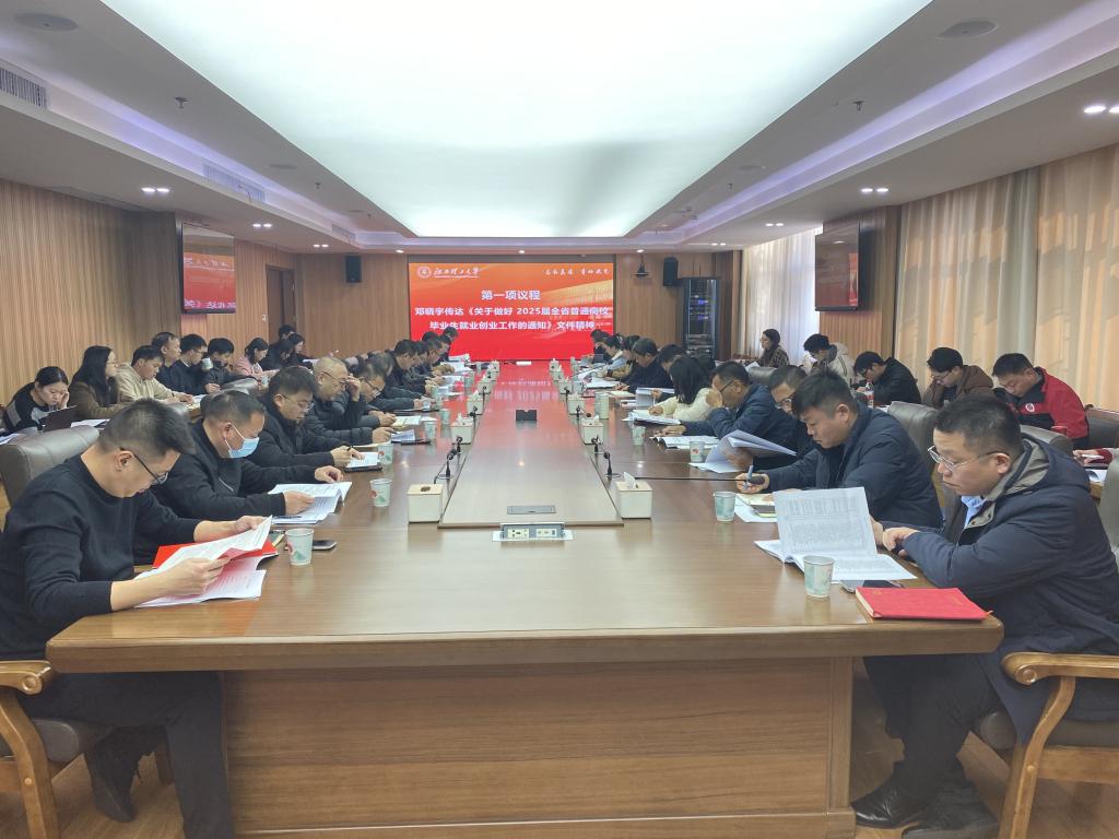会上,邓晓宇传达了《关于做好2025届全省普通高校毕业生就业创业工作的通知》文件精神,通报了近期本科毕业生就业情况、存在的问题并做出下一步工作部署;研究生院副院长王俊峰通报了近期研究生毕业生就业情况并对下一步工作进行了部署;各学院介绍了学院的就业情况及寒假就业工作计划。