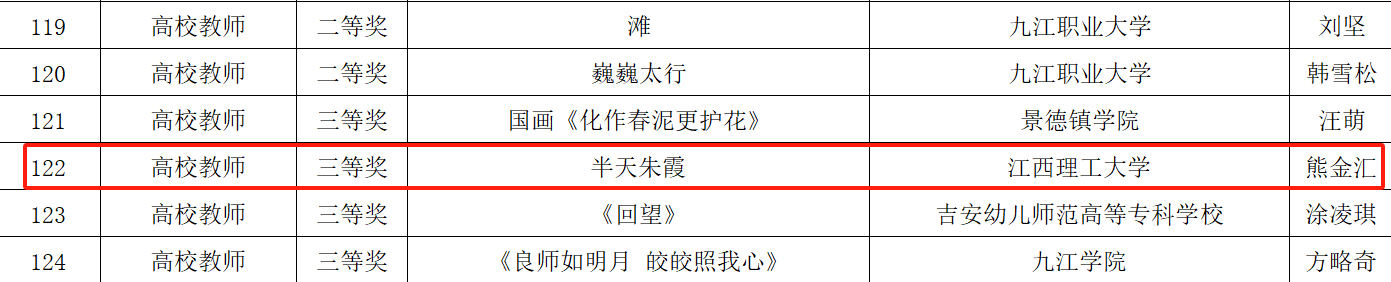 本网讯 近日,江西省教育厅、江西省文学艺术界联合会联合发文公布全省大中小学书画大赛获奖名单,此次大赛由校团委进行精心组织,统筹安排,百家乐 建筑与设计学院熊金汇老师凭借水墨作品《半天朱霞》脱颖而出,荣获教师组三等奖。