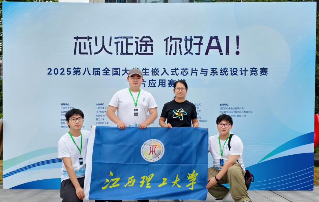 本网讯 8月10日-13日,2025第八届全国大学生嵌入式芯片与系统设计竞赛应用赛道全国总决赛在南京举行。由韩树人、曾璐老师指导的林天毅、刘汉晨、臧祥善同学历经层层闯关,从全国11800支参赛队伍中脱颖而出,荣获全国三等奖,展现了扎实的专业功底。