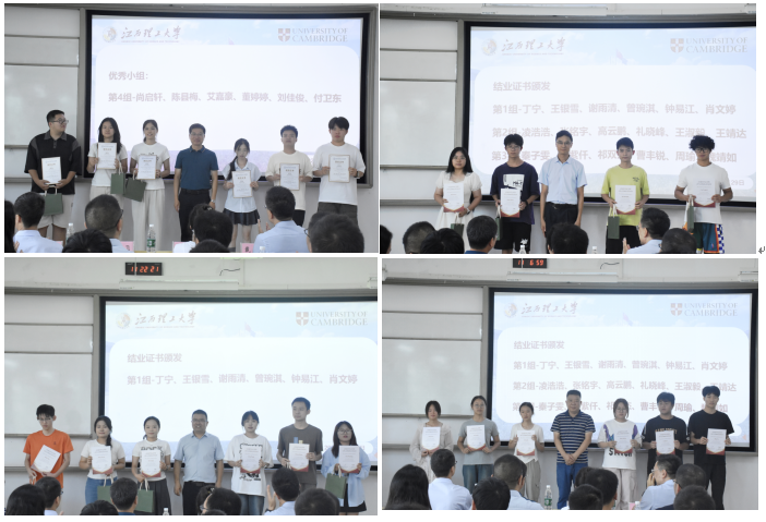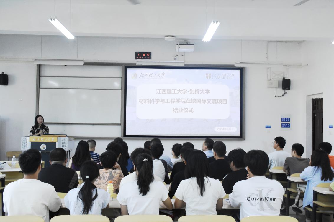 ——剑桥大学材料科学与工程学院在地国际化培训项目结业仪式在三江校区(东园)阅道楼顺利举行。校党委常委、纪委书记、监察专员刘飞、教务处处长潘春荣、国际交流与合作中心主任蔡进宝、材料科学与工程学院院长刘柏雄及相关教师、剑桥大学材料科学与冶金系副教授Dr. Chen Peiyu、全美国际教育协会代表戴勇、朱丽萍、区永茵、阮羽宁及项目全体结业学生共同参与仪式。仪式由区永茵主持。