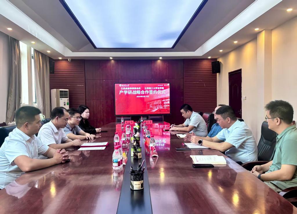 红旗校区法学院210会议室举行“产学研战略合作”签约仪式。江西虔嘉律师事务所主任朱海强一行,法学院党委书记陈龙泉、院长项波、党委副书记欧阳鹏、副院长张奇等出席仪式。