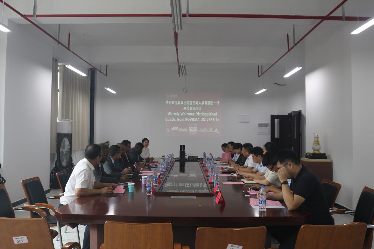 本网讯 9月22日,莫桑比克鲁伍马大学考察团一行来访,并在三江校区(西园)天工楼第一会议室举行交流座谈会。校国际交流与合作中心主任蔡进宝、资源与环境工程学院院长何桂春、副院长余新阳,生命科学学院副院长董伟、鲁伍马大学校长马里奥•若热•卡埃塔诺•布里托•多斯桑托斯、学术副校长伊布拉伊莫•哈桑•穆萨吉、工程学院院长格德斯•安东尼奥•卡埃塔诺、食品与农业科学学院院长蓬皮利奥•阿曼多•温图阿尔、莫桑比克中国投资有限公司区域经理郑逸恒参加了座谈交流。会议由何桂春主持。