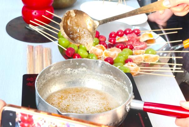 果香四溢,大家欢聚一“糖”,为活动现场增添一抹温暖的传统韵味。循香望去,学生志愿者带领参与者们体验一项传统技艺——熬糖。随着温度攀升,糖块渐融成琥珀色糖浆,在锅中缓缓流转,拉丝成缕,尽显古法工艺的温润质感。