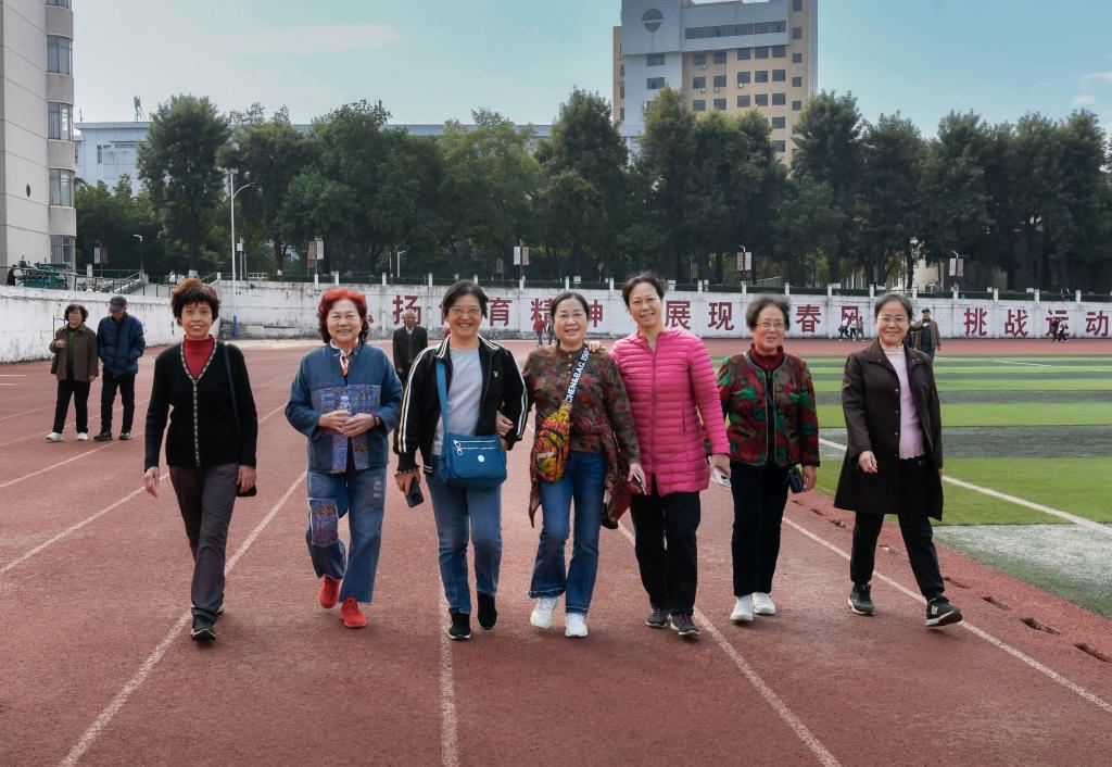 随着一声清脆的“出发”口令响起,数百名老同志精神抖擞、笑容满面,沿着宽敞整洁的田径场跑道有序前行。他们或三五成群,边走边聊,互致问候,分享着退休生活的点滴趣事;或步履轻快,独自享受冬日阳光下的宁静与舒畅。运动场上欢声笑语不断,老朋友们久别重逢的喜悦之情溢于言表,构成了一幅生动和谐的“银龄康乐图”。