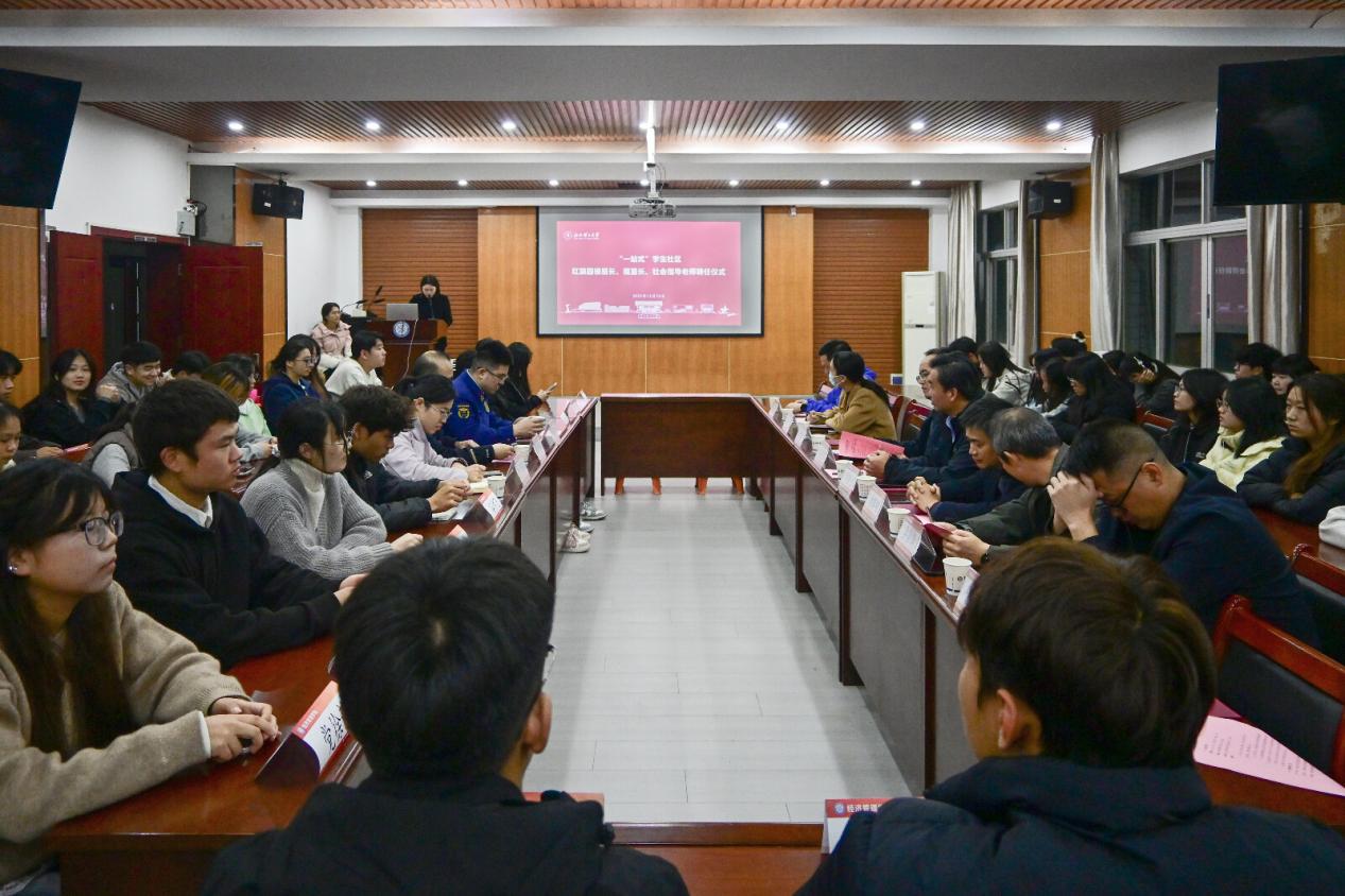 会议首先进行了红旗园“一站式”学生社区聘任仪式。刘传立对公安、消防及属地社区长期以来给予学校“一站式”学生社区工作的支持表示诚挚感谢,并指出学生参与社区建设的重要价值与社会指导老师的关键作用,勉励全体受聘楼层长、寝室长以青春担当助理社区治理,持续打造温馨舒适的社区环境。